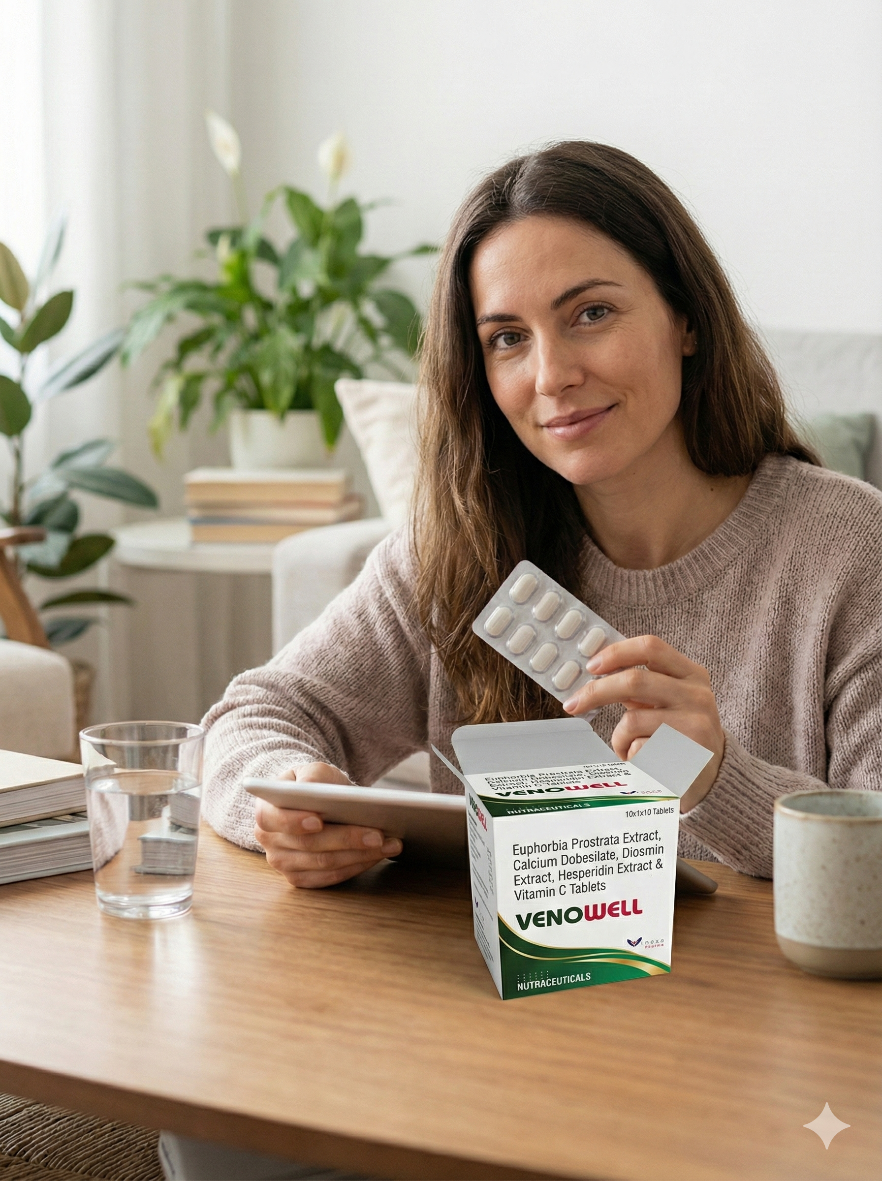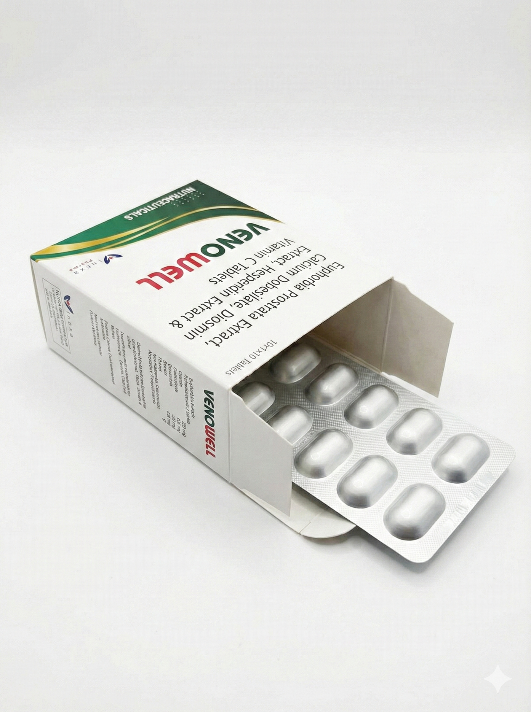 VENOWELL venous health tablets is a nutraceutical formulation designed to support venous circulation, reduce capillary fragility, soothe vascular inflammation, and improve tissue healing. The combination of Diosmin, Hesperidin, Euphorbia Prostrata, Calcium Dobesilate, and Vitamin C offers synergistic benefits for patients with venous insufficiency, hemorrhoids, bleeding tendencies, and microcirculation impairment.